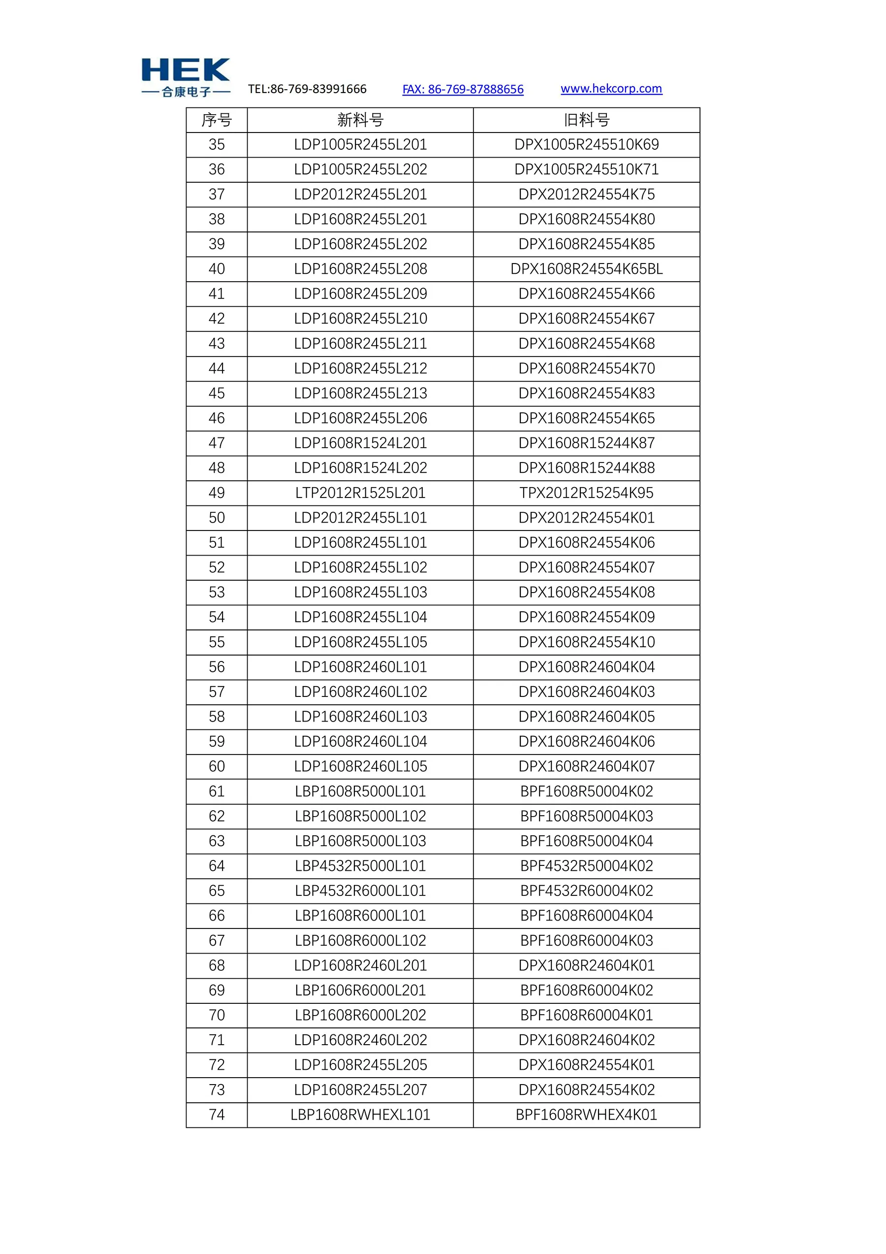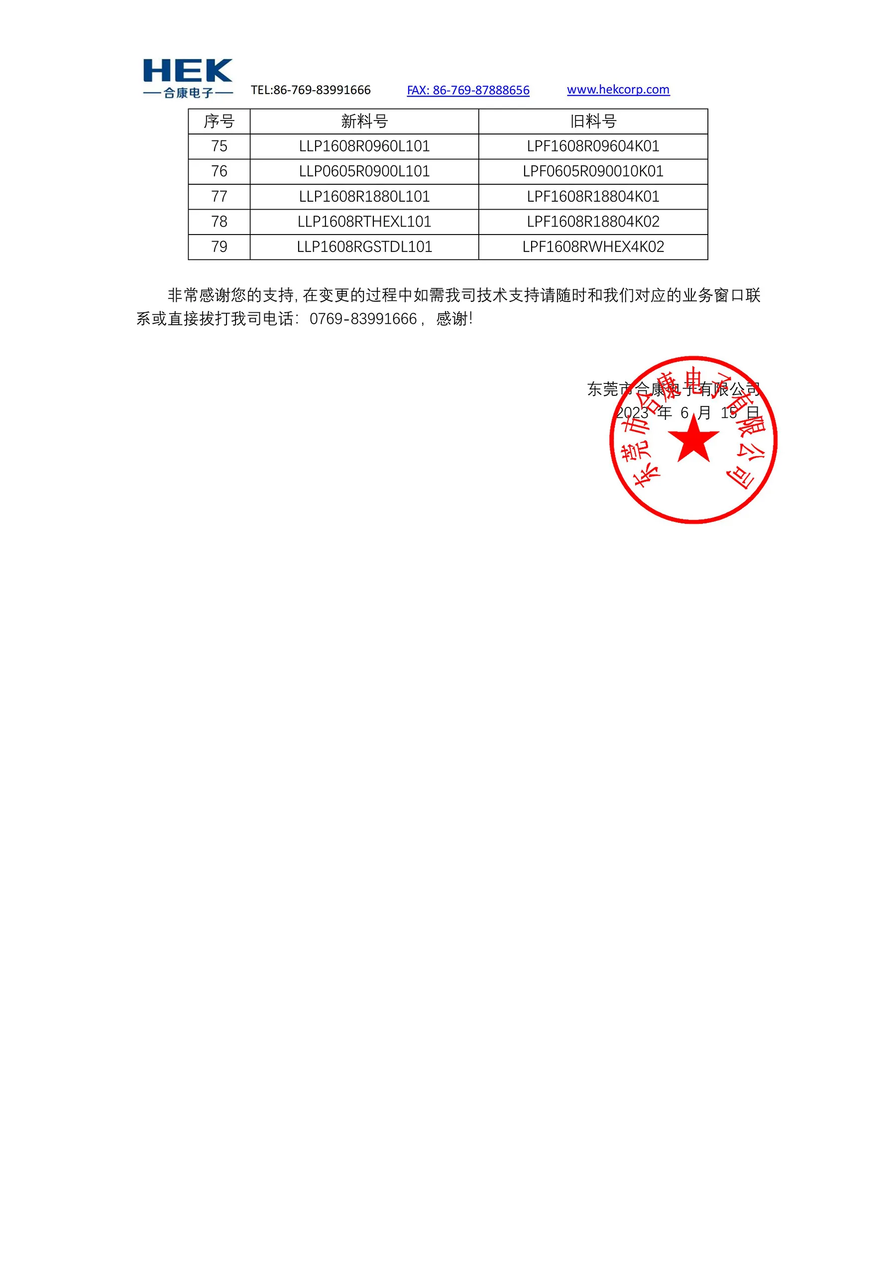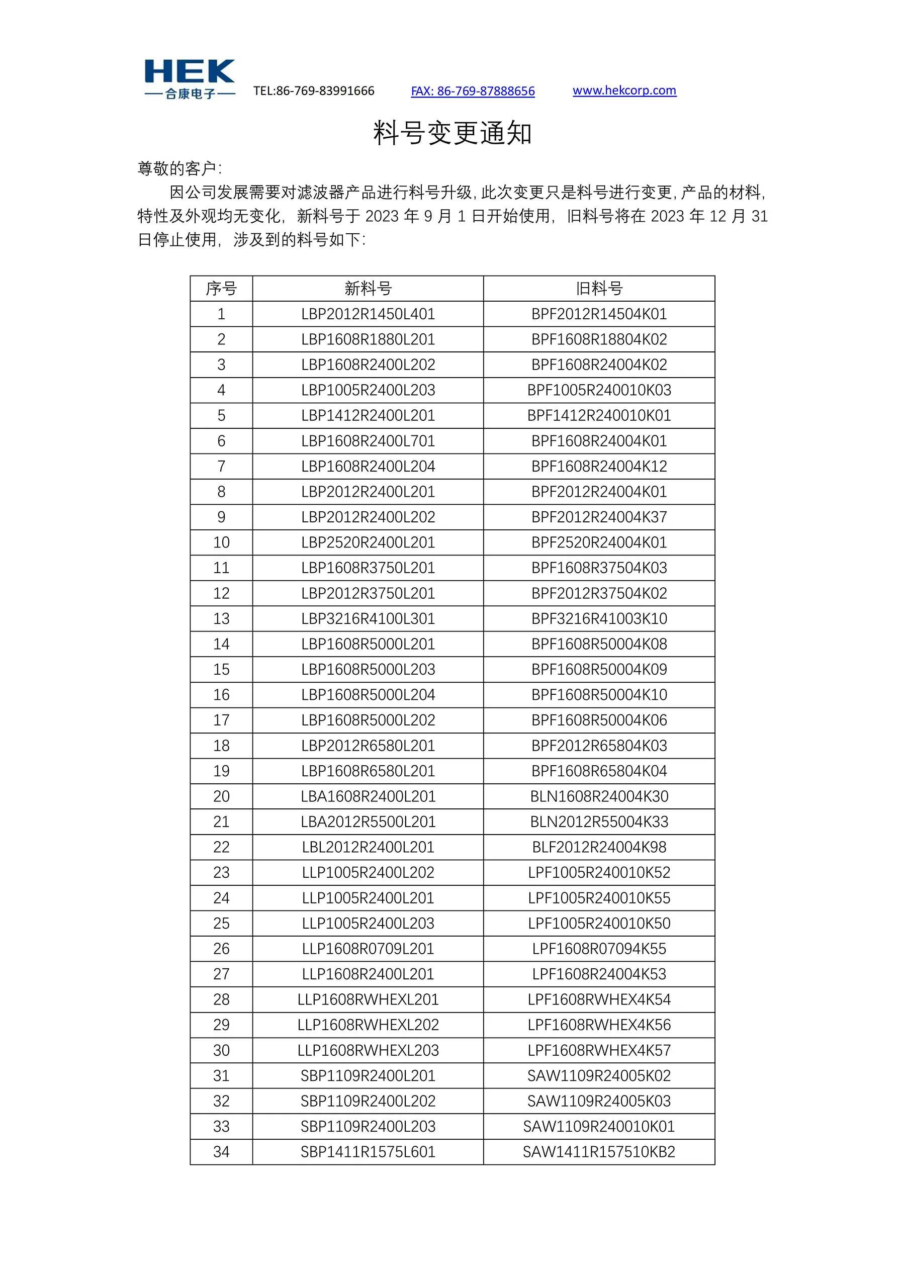 滤波器料号变更通知