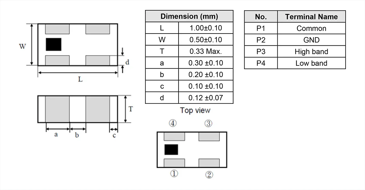 デュプレクサLP1005R2455L202LB: 2400~2500MHz